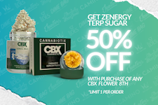 Buy any CBX flower 8th, Get 1 Zenergy (S) | 1g Terp Sugar 50% off