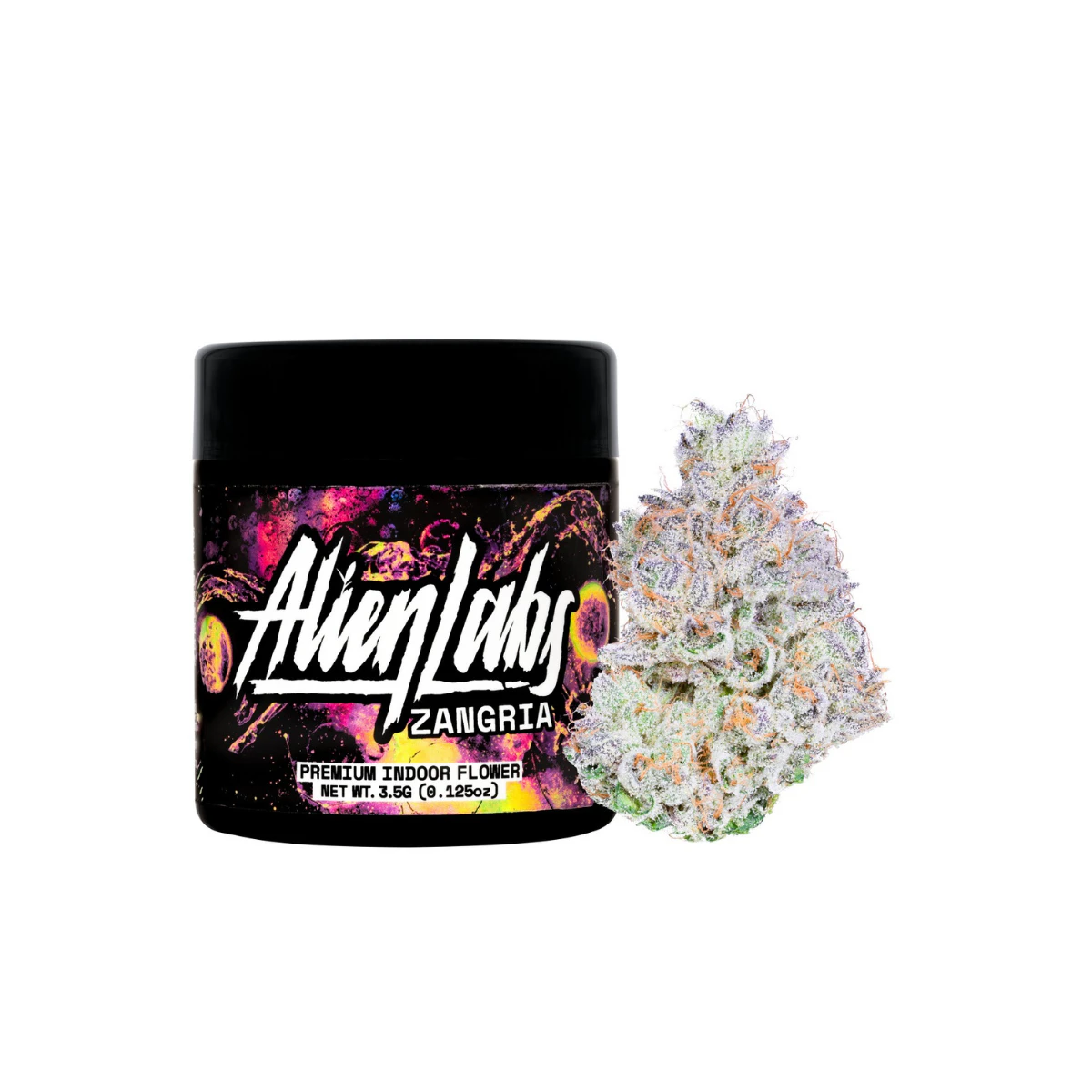 This premium indoor-grown flower offers dense, meticulously crafted nugs, each sparkling with a thick coating of trichomes. Alien Labs' commitment to quality is evident in the structured, resin-packed buds that radiate a luminous hue, indicative of its exotic Zkittlez and Girl Scout Cookies lineage.