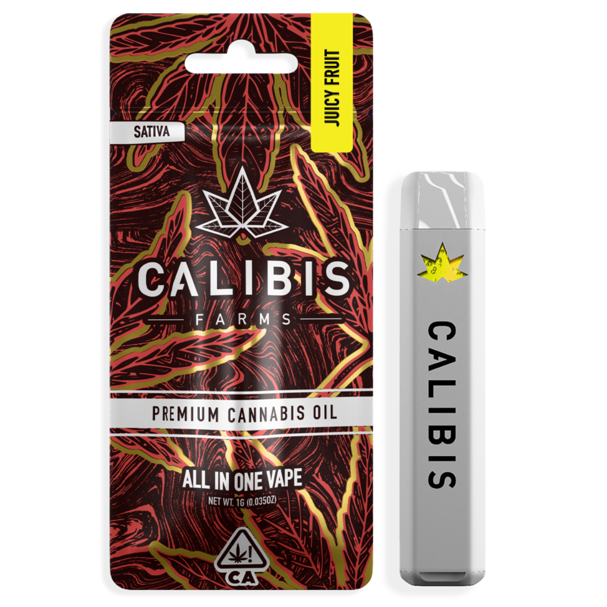 Savor a sweet tropical burst with Calibis Farms' Juicy Fruit 1g High Potency Vape All-In-One. This sleek and disposable AIO device delivers full-spectrum sativa effects through potent, flavorful distillate oil. Expect silky pulls, bold fruit-forward flavor, and fast-acting energy in every hit. Crafted for convenience and potency, it's perfect for an uplifting day on the move.