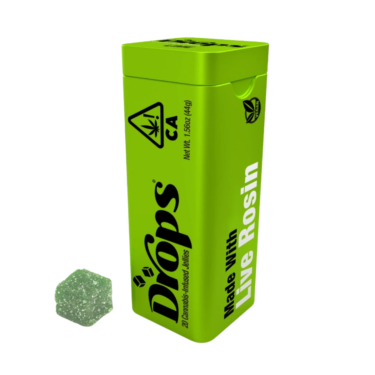 The Lime (Banana Punch) Balanced 5mg Live Rosin Jellies from Drops offer a perfectly balanced cannabis experience. Each pack contains 20 jellies, each infused with 5mg of live rosin, delivering 100mg total THC. Crafted with live rosin extracted from the Banana Punch strain, these jellies provide the full spectrum of cannabinoids and terpenes for a rich and enjoyable high. This product does not include specific ratios of CBD, CBN, or THCv.