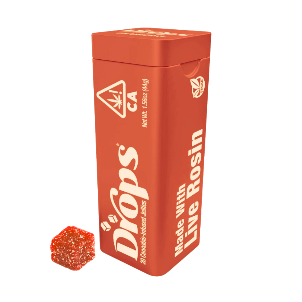 The Strawberry (Jack One) Lifted 1:4 CBD:THC Live Rosin Jellies from Drops provide a gentle balance of CBD and THC, perfect for users looking for the benefits of both cannabinoids with a mild, uplifting effect. Infused with live rosin from the Jack One sativa strain, each piece offers a 1:4 ratio of CBD to THC, creating a smooth experience with both relaxation and a touch of euphoria.