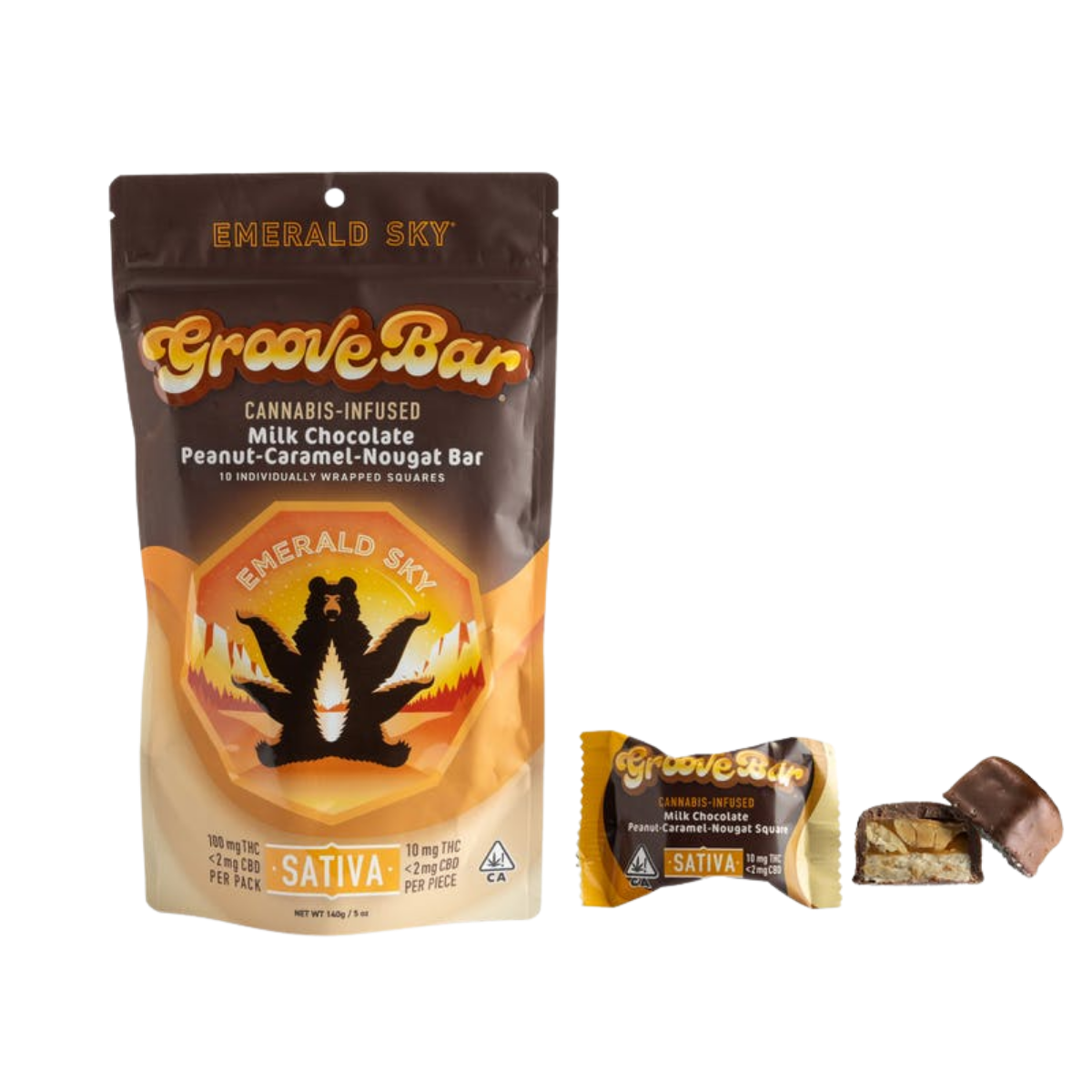 GrooveBar (S) | 10mg 10pk Peanut Milk Chocolate Nougat Bar | Emerald Sky
