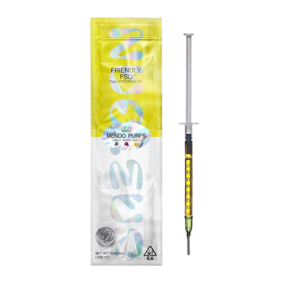 Friendly Farms’ Mendo Purps is a premium **FSO (Full Spectrum Oil) Cure Resin** packaged in a convenient applicator for precise and versatile dosing. Extracted from cured indica-dominant flower using hydrocarbon methods, this full-spectrum oil preserves a rich cannabinoid and terpene profile to deliver strong entourage effects. Ideal for dabbing, enhancing bowls, or infusing joints, this applicator offers potent relief with classic indica character.