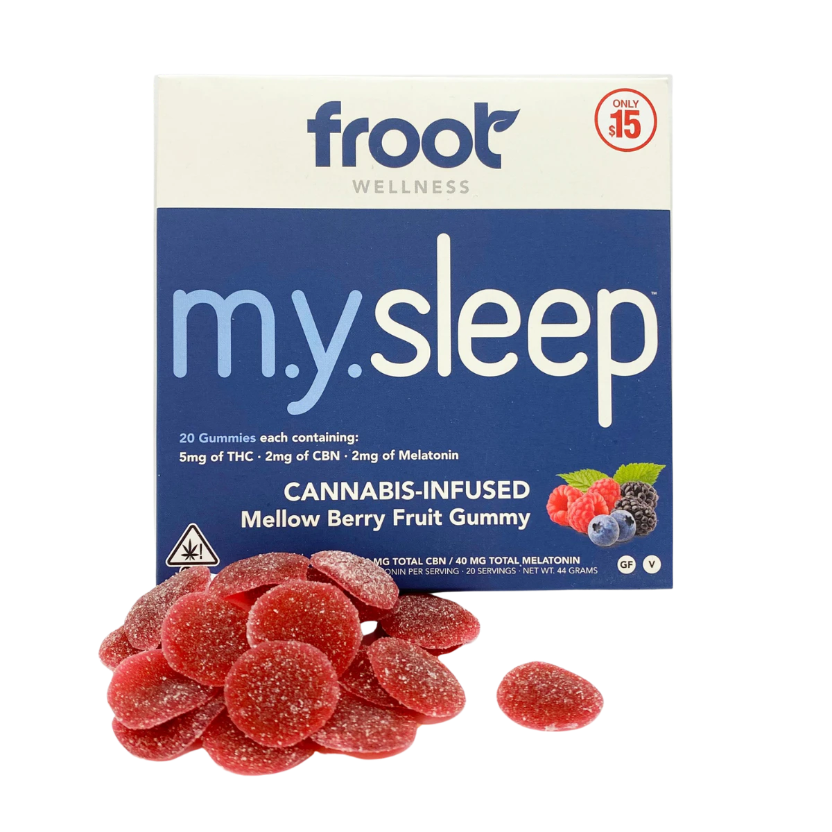 Designed for deep, restorative rest, Froot Wellness M.Y. Sleep Gummies blend THC, CBN, and PhytoMelatonin to help your body and mind wind down naturally. Each soft, delicious gummy is infused using high-quality cannabis oil to ensure clean flavor, consistent potency, and a smooth onset—perfect for nighttime relaxation.