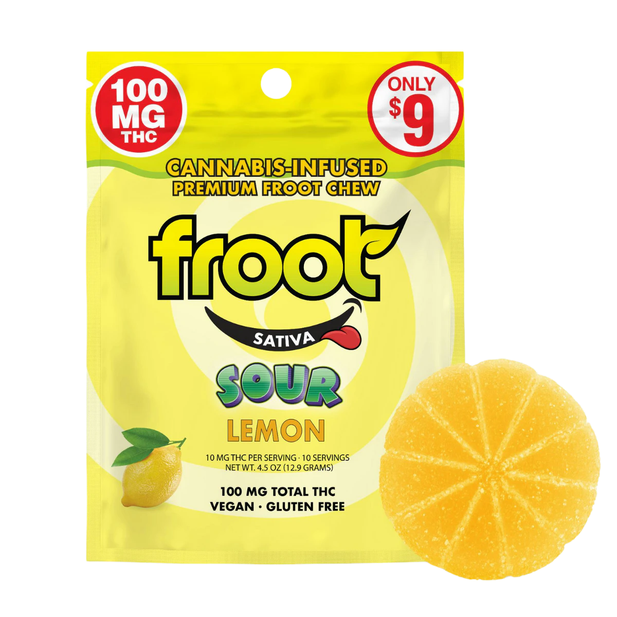 Get ready for a citrus-powered lift with Froot Sour Lemon — a premium cannabis-infused gummy made for sunshine and smiles! Each pack contains 100mg of THC, perfectly divided into 10 x 10mg servings for easy dosing. Infused with sativa cannabis extract, this gummy is ideal for daytime energy, mood elevation, and creative bursts. Whether you're tackling your to-do list or heading into the outdoors, this zesty edible is your go-to boost.