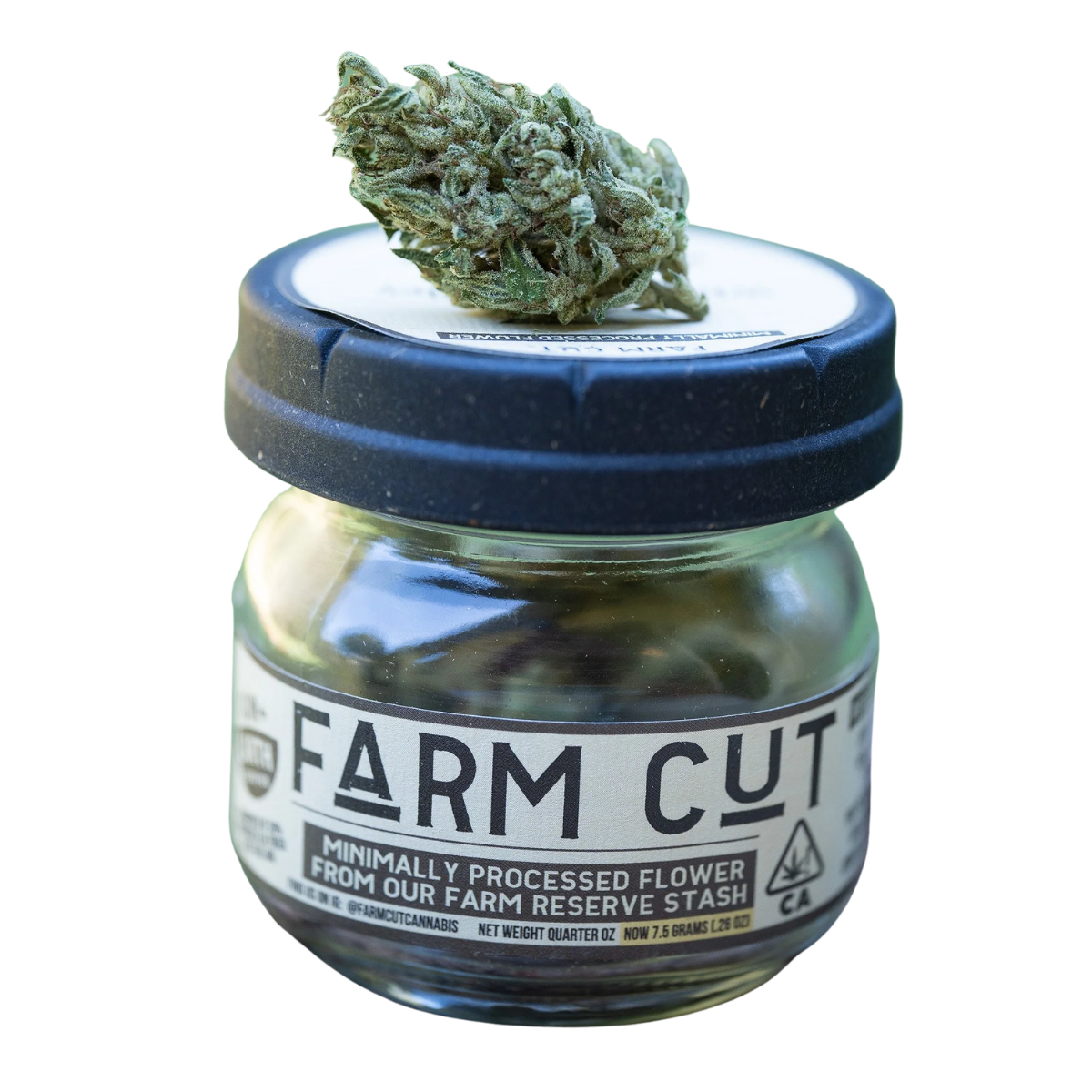 True to Farm Cut’s philosophy, this flower is sungrown and comes from Sun+Earth Certified legacy farms. Farm Cut was built on a simple premise: these farmers don’t trim the cannabis they grow for personal use—they keep it untrimmed until it’s time to roll, brushing off excess leaf by hand to preserve terpenes and trichomes. That same attention to freshness shows up in the packaging too—Farm Cut favors bigger jars to protect the flower’s aroma, resin, and overall integrity.