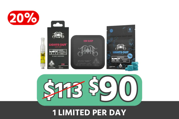 Build your night routine with a full Lights Out lineup from Heavy Hitters—three CBN-forward options designed for deep relaxation and end-of-day unwinding. This bundle pairs a soothing Lights Out vape cart for quick, on-demand hits with sugar-free gummies for a longer, mellow ride, plus THC:CBN tablets for a clean, easy-to-dose option. Perfect for winding down after a long day, quiet nights in, and keeping multiple formats ready depending on what you need. 🌙😴What’s Included: