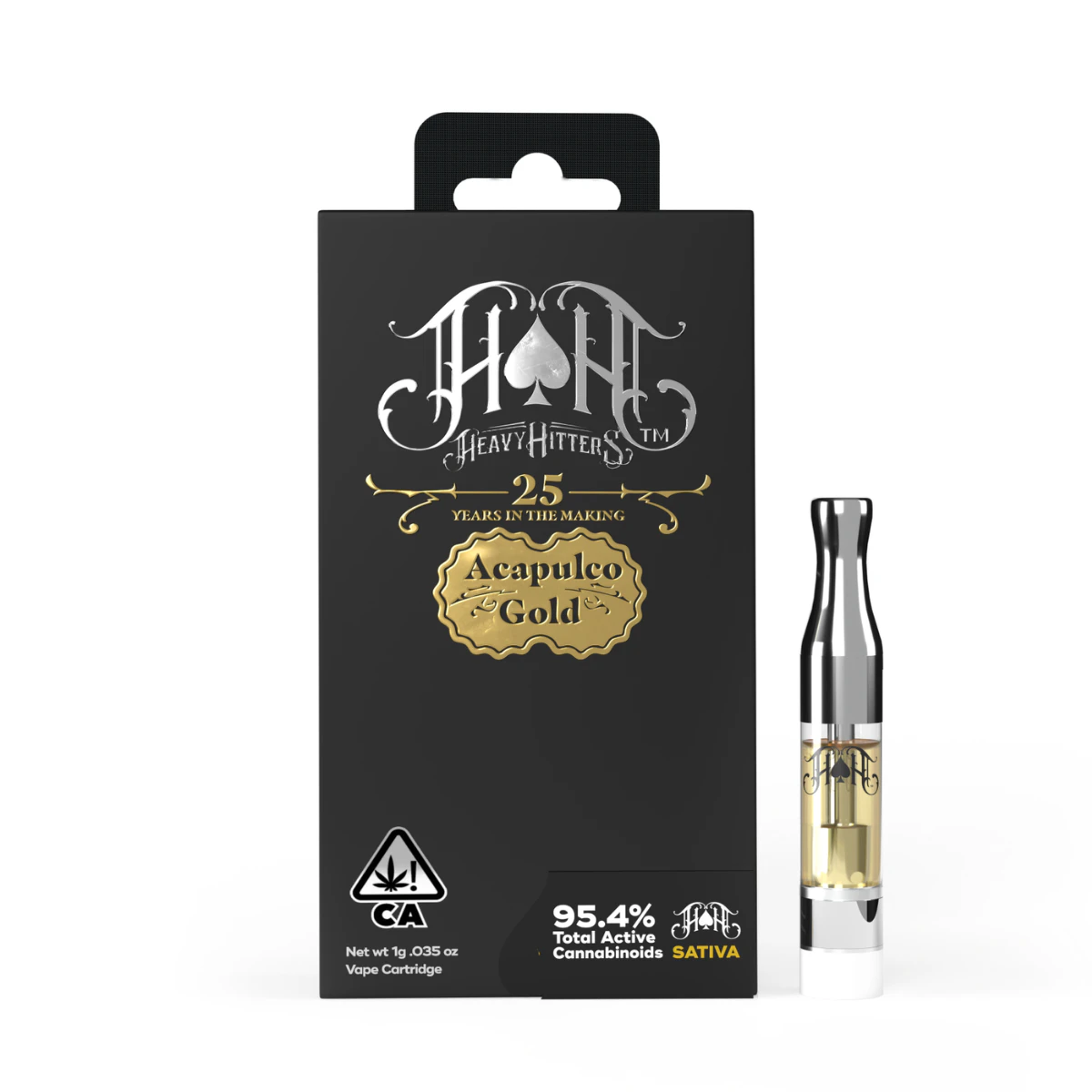The Heavy Hitters Acapulco Gold 1 g Ultra Cart is crafted from premium indoor flower, processed to ultra-high purity and potency. Featuring 100% cannabis-native terpenes and THC levels reaching up to 90%+, this cartridge delivers an elevated sativa experience in a refined, all-in-one format designed for smooth, vibrant hits.