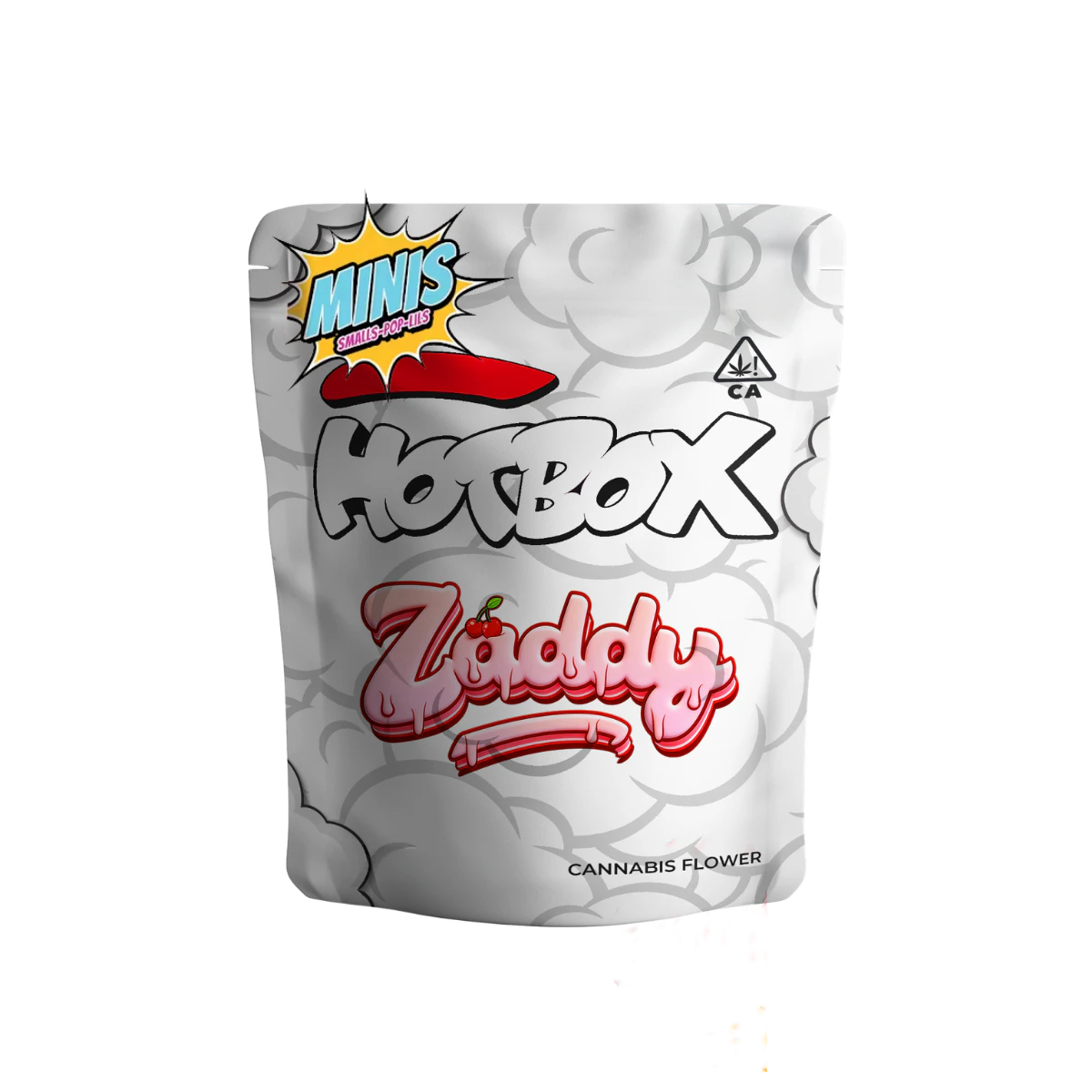 Hotbox Zaddy Indoor Minis is a flavor-forward hybrid that brings a creative, happy, euphoric kind of lift—paired with a bold aroma that stands out the second you crack the bag. Bred by Clout King, Zaddy is a cross of Granddaddy Z × Wagyu, delivering a pungent “Z” nose with a bud structure that leans more Runtz-like—dense, frosty, and snack-worthy.