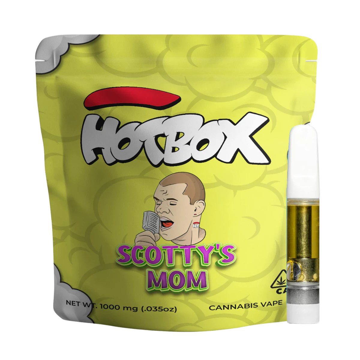 Scotty's Mom 1g Indica Vape from Hotbox features a premium distillate formulation, delivering a smooth and potent vape session. Designed for relaxation, this indica vape is perfect for winding down after a long day or seeking comfort during mellow evenings.