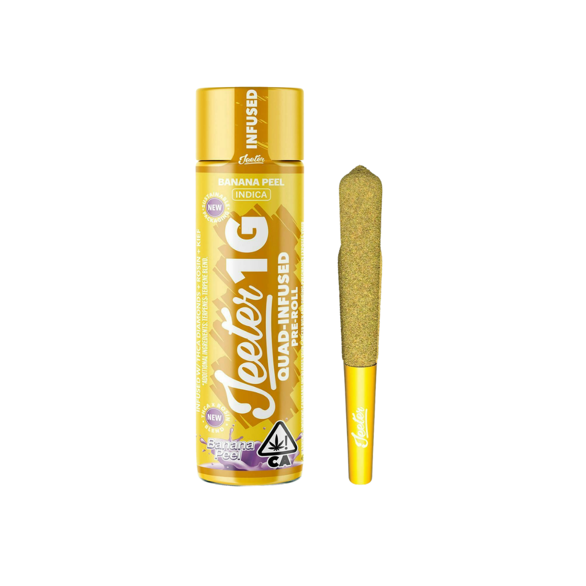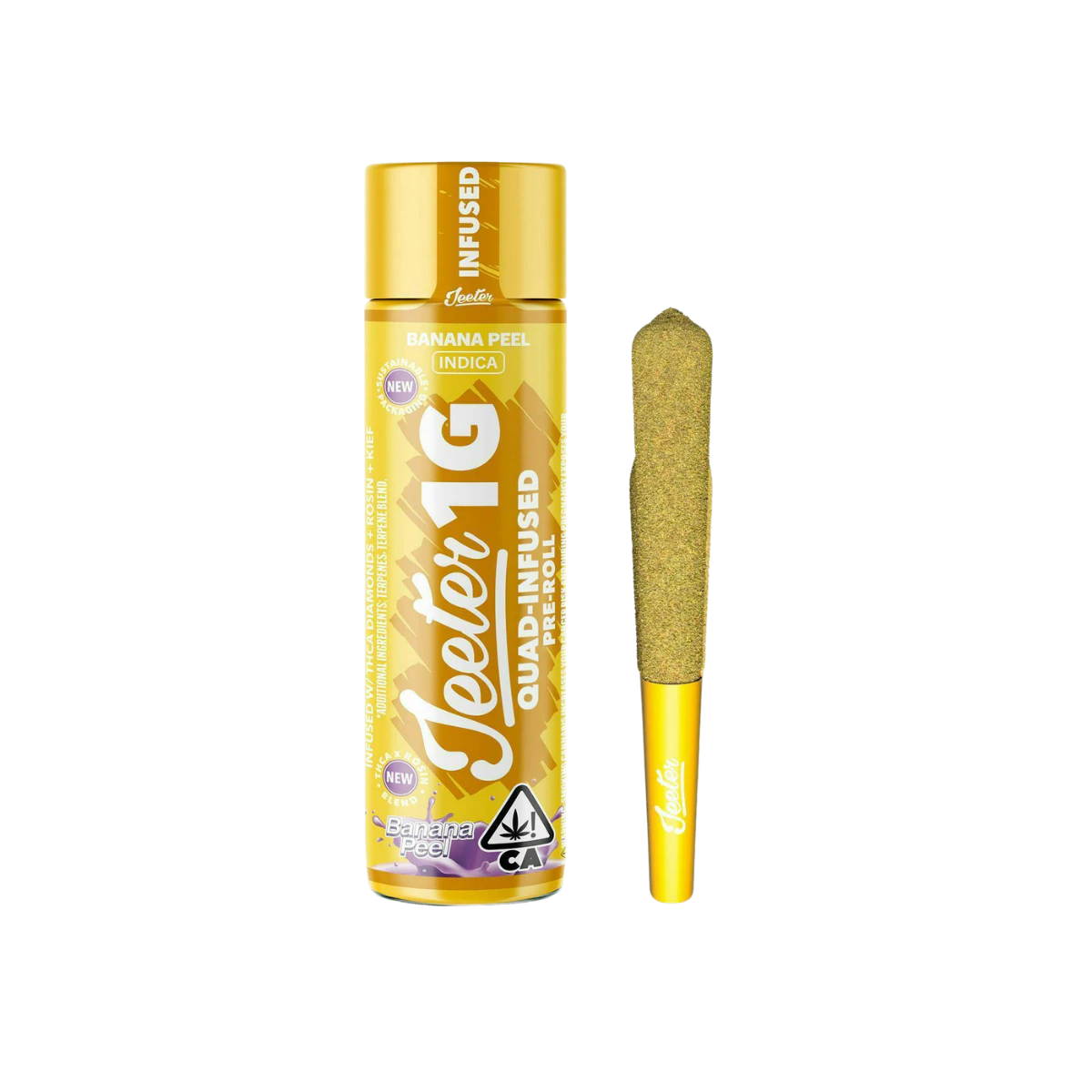 Banana Peel delivers a rich, heavy-hitting smoke in Jeeter’s premium 1g Infused Preroll format. Created from Banana OG (Laffy Taffy cut) x Pestilence, this indica stands out with a sweet fruit-driven profile backed by deeper fuel-like undertones for a flavor experience that feels bold, smooth, and unmistakably loud. Jeeter’s quad-infused construction takes it even further, layering THCA diamonds, rosin, terpene-enhanced aroma, and a kief finish for a longer-lasting, more potent session with full-bodied flavor and an elevated finish.
