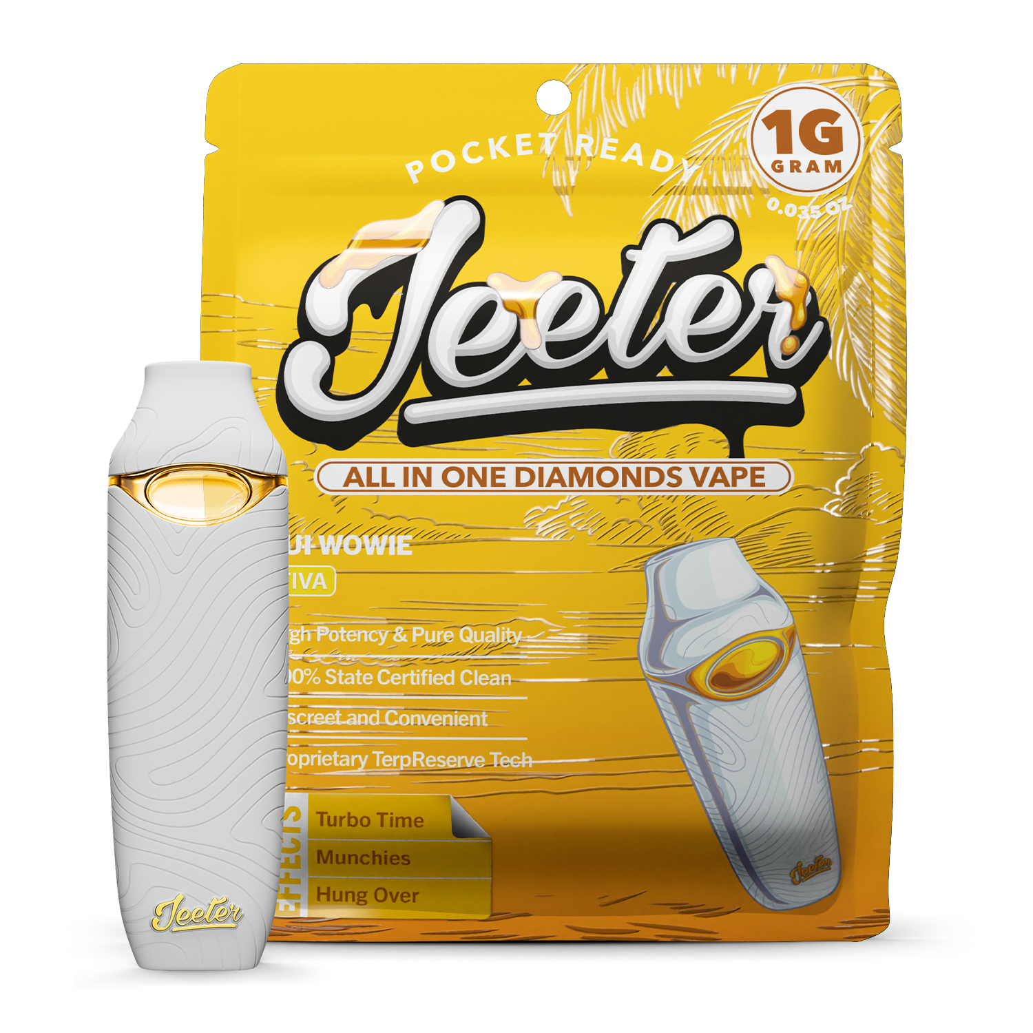 Maui Wowie 1g Liquid Diamonds All-In-One Vape by Jeeter is a premium sativa crafted with high-potency Liquid Diamonds extract. This AIO delivers a smooth, clean burn and preserves the strain’s natural terpene and cannabinoid profile for a flavorful and energizing experience. Perfect for on-the-go use with no battery needed.
