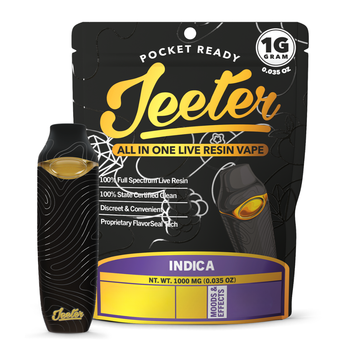 Jeeter Triple Double Live Resin AIO is a full-spectrum, ready-to-use indica vape built for customers who want a smoother, more flower-like experience in a simple grab-and-go format. Jeeter’s Live Resin AIO devices are pre-filled and designed to showcase their most true-to-strain extracts, giving you rich flavor and deeper body effects without any setup.