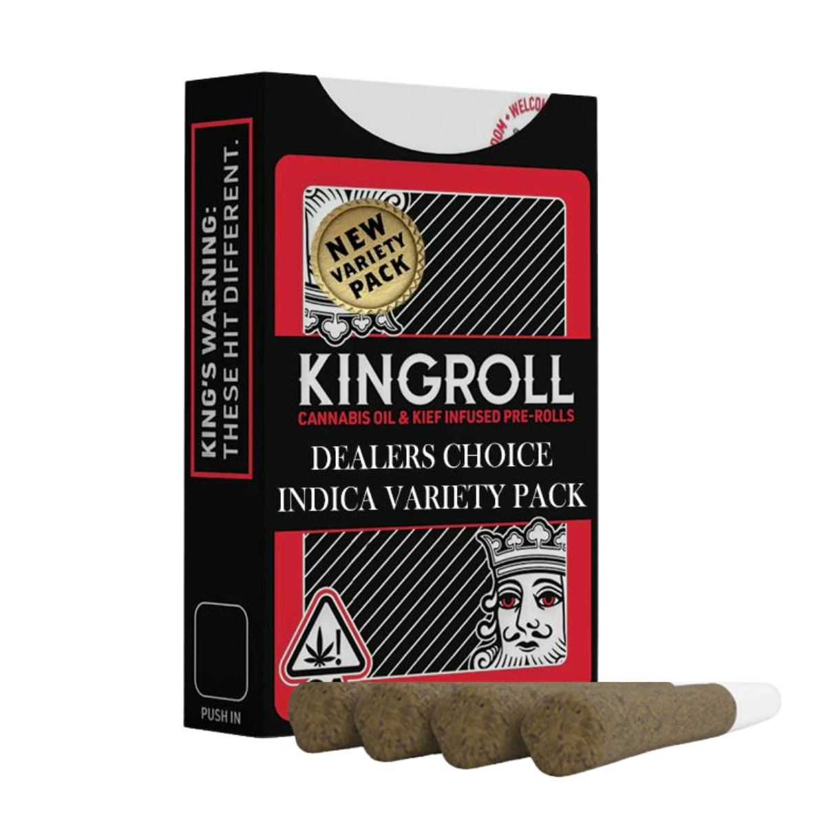 The OG Kush x Northern Lights Kingroll Jr pack brings you four expertly crafted .75g infused prerolls, made with premium indoor flower, high-potency distillate, and dusted in golden kief. Kingroll Jr prerolls are rolled to perfection for an even, slow burn that delivers big flavor and powerful effects in a more compact size—perfect for personal sessions or sharing.