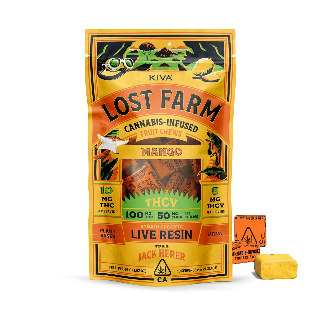 This sativa‑leaning chews pack from Lost Farm delivers 100 mg of THC and 50 mg of THCV per 10‑piece pack (10 mg THC + 5 mg THCV per piece). :contentReference[oaicite:1]{index=1} Infused with 100% live resin of the iconic strain Jack Herer, the mango‑forward flavor and energetic terpenes make this ideal for daytime use, creativity, and uplifted focus. :contentReference[oaicite:3]{index=3}