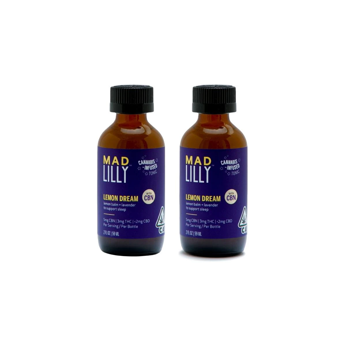 Restful nights make brighter mornings with Mad Lilly™ Lemon Dream Tonic. Melt into a tasteful nightly routine with lightly sweetened lemon juice, low-dose cannabinoids and hints of lemon balm and sleepy lavender. The 5:3:2 ratio of CBN, THC and CBD was designed to create an optimal blend of cannabinoids for full-body relaxation.