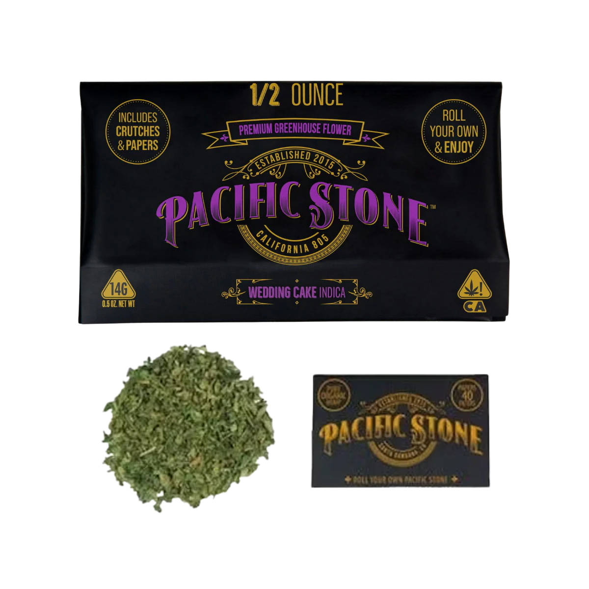 Pacific Stone’s Premium Sugar Shake is trimmed from sustainably grown, sun-assisted coastal greenhouse flower and curated to keep the trichome-rich goodness for smooth, flavorful rolls. This 14g “roll-your-own” pouch features the crowd-favorite Wedding Cake—an indica leaning hybrid loved for its creamy dessert profile and deeply relaxing body vibe. The fold-over pouch makes it easy to scoop and roll straight from the bag; includes rolling papers & filters for unbeatable value and convenience.