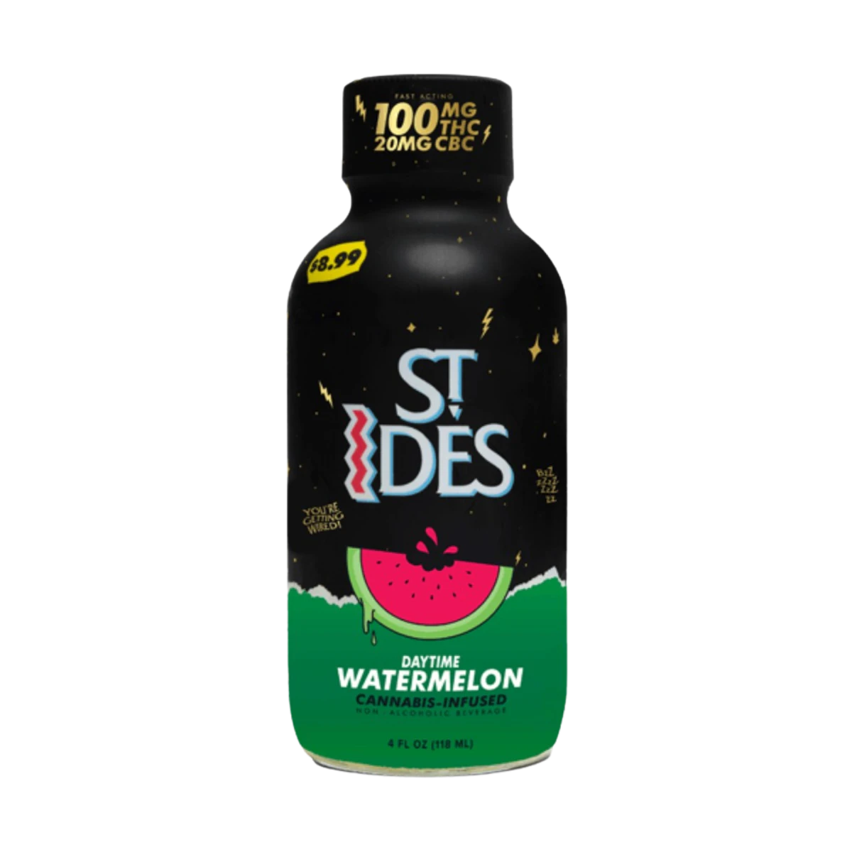 St Ides Watermelon Shot is a single-serve 4oz beverage infused with 100mg THC and 20mg CBC for a fast, fruit-forward kick. Designed for flexible, sip-able dosing, it blends juicy watermelon flavor with a smooth finish—perfect as a standalone shot or mixed into a chilled drink for a tasty nightcap.