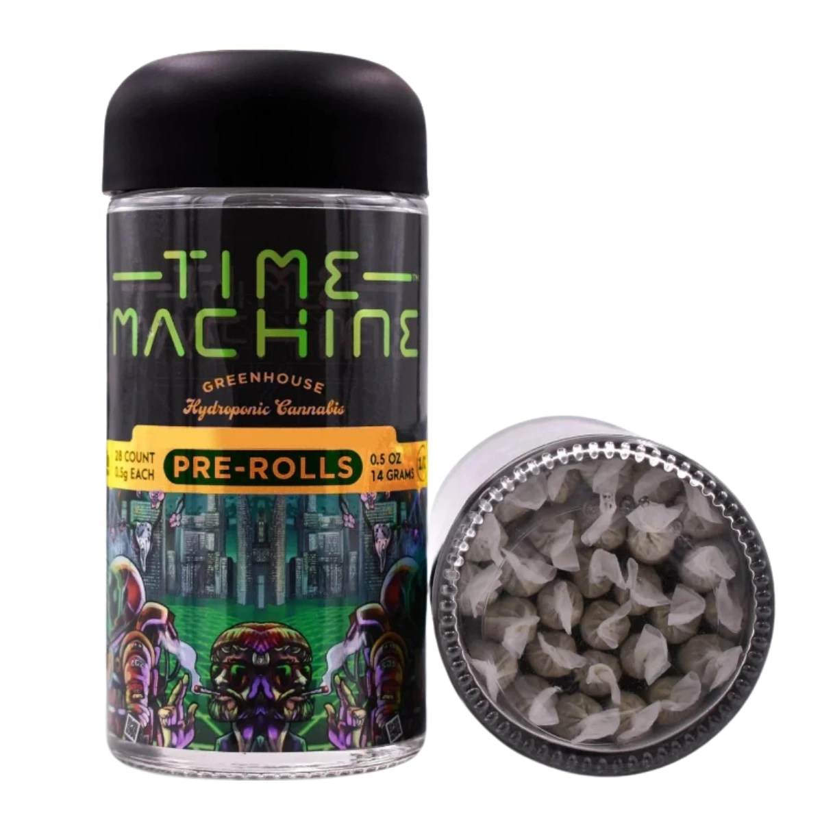 These aren’t just pre-rolls—Time Machine calls them Fuel-Rods. Each one is carefully packed with premium 100% greenhouse flower for a consistent burn and an “out of this world” session. This jar includes 28 pre-rolls at 0.5g each—perfect for stocking up, sharing with friends, or keeping the vibe rolling through the day.