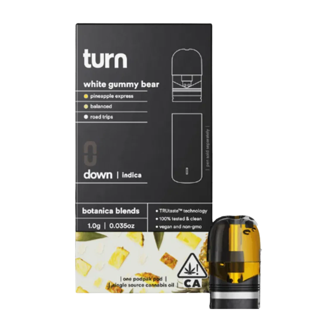 Elevate your vaping experience with the White Gummy Bear Turn 1g Botanical Blends Vape Pod. Crafted with precision, this pod offers a unique blend of botanical extracts to deliver a distinctive vaping experience. Enjoy the smooth and flavorful vapor with each inhale. (Type: Botanical Blends)