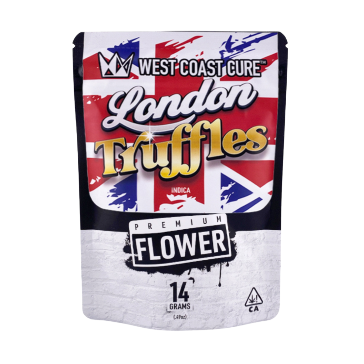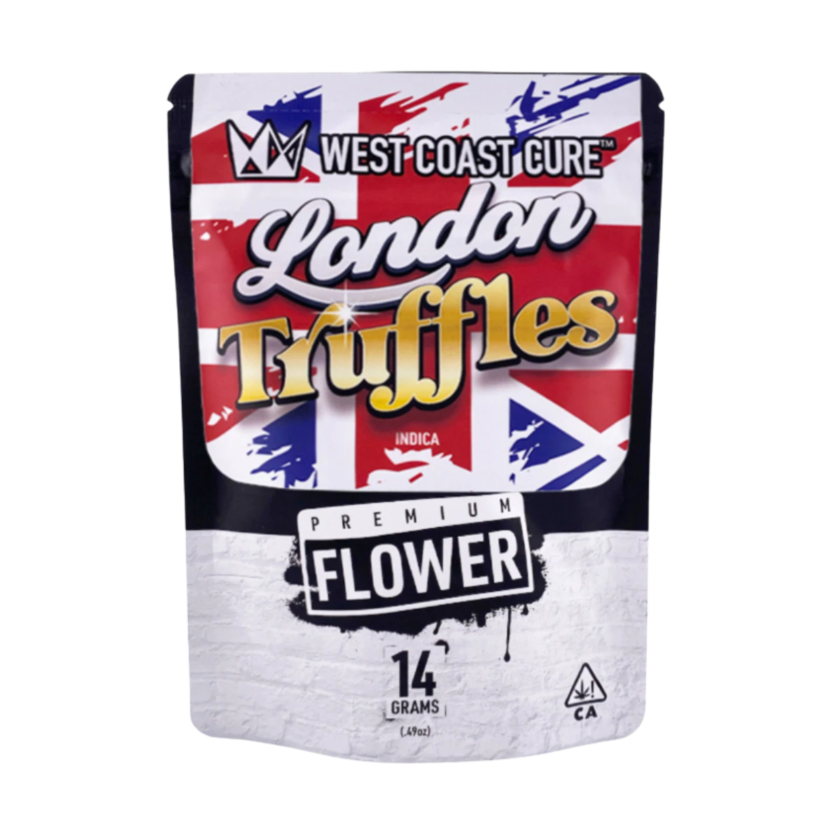 London Truffle is a 14g premium indoor indica featuring dense, frosty nugs bursting with rich aroma. Grown with precision by West Coast Cure, this strain showcases deep hues and heavy trichome coverage, delivering smooth potency and top-shelf flavor. Its creamy, earthy profile makes it ideal for evening sessions or a relaxing unwind.Strain Description: