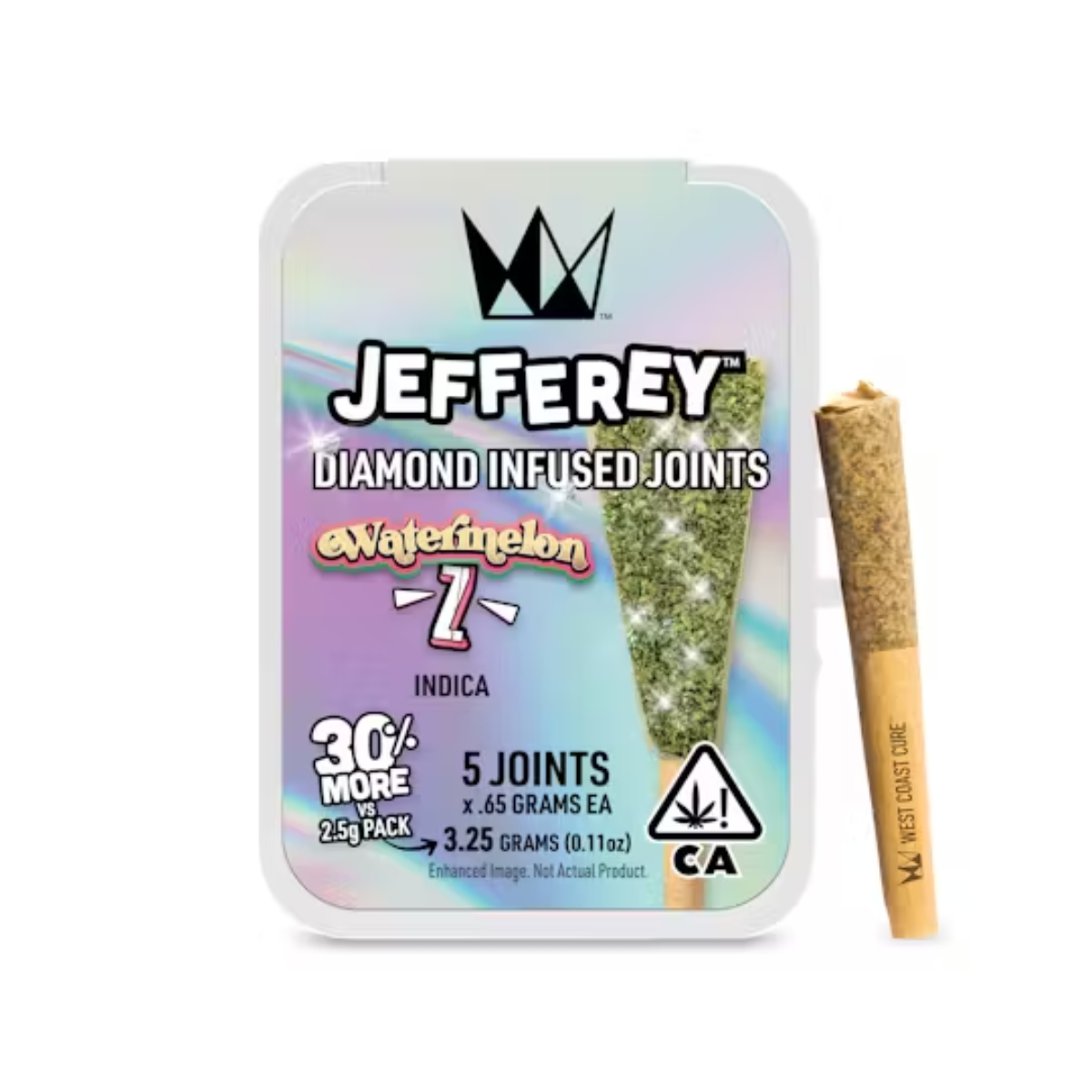 West Coast Cure’s Watermelon Z Jefferey prerolls pair premium whole flower with THCA “diamond” infusion for terp-rich flavor and heavy, full-bodied potency. This 5-pack includes five 0.65g minis (3.25g total), each rolled for an even, slow burn and a candy-sweet melon finish—perfect for relaxed evenings, movie nights, or a tasty nightcap.