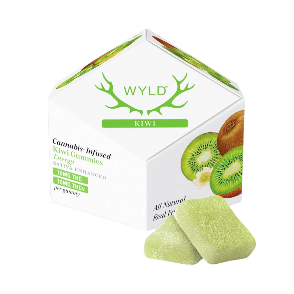 Find focused energy with Wyld's Kiwi Sativa Gummies, formulated with a balanced 1:1 ratio of THC and THCV. Each pack includes 10 gummies, each delivering 10mg of THC and 10mg of THCV—designed to provide uplifting effects with minimal munchies or mental fog. Perfect for daytime use, creative work, or outdoor adventures, these gummies offer a bright, motivating high enhanced by energizing terpenes and fruity kiwi flavor.